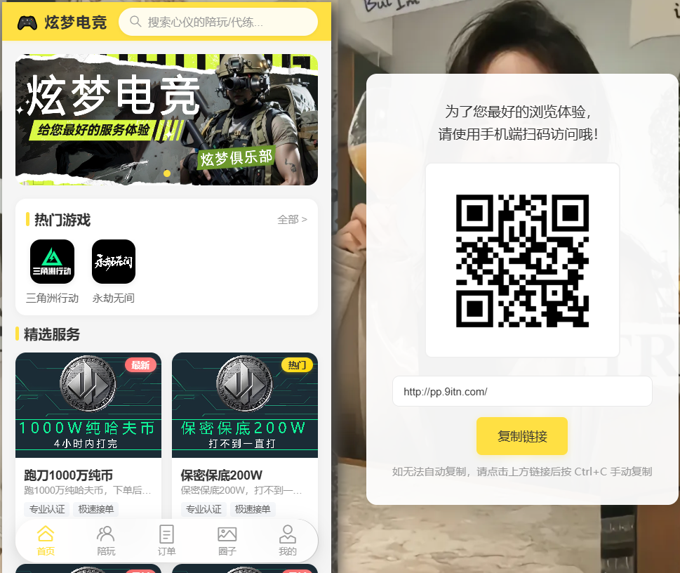 上面是已在运营中的站点,做的是三角洲行动护航+陪玩